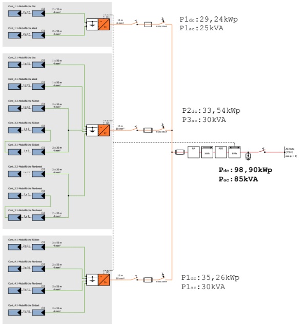 Die elektrische Ausführung wird nach geltenden Normen und Vorgaben geplant. Die Schnittstelle zur Modulinstallation und Leitungsführung vom Dach bis zum Technikraum werden sauber installiert. Der Wechselrichter wird montiert, optional mit Batteriespeicher und Wallbox. Alle Komponenten werden entsprechend der Planung vernetzt und eingestellt.